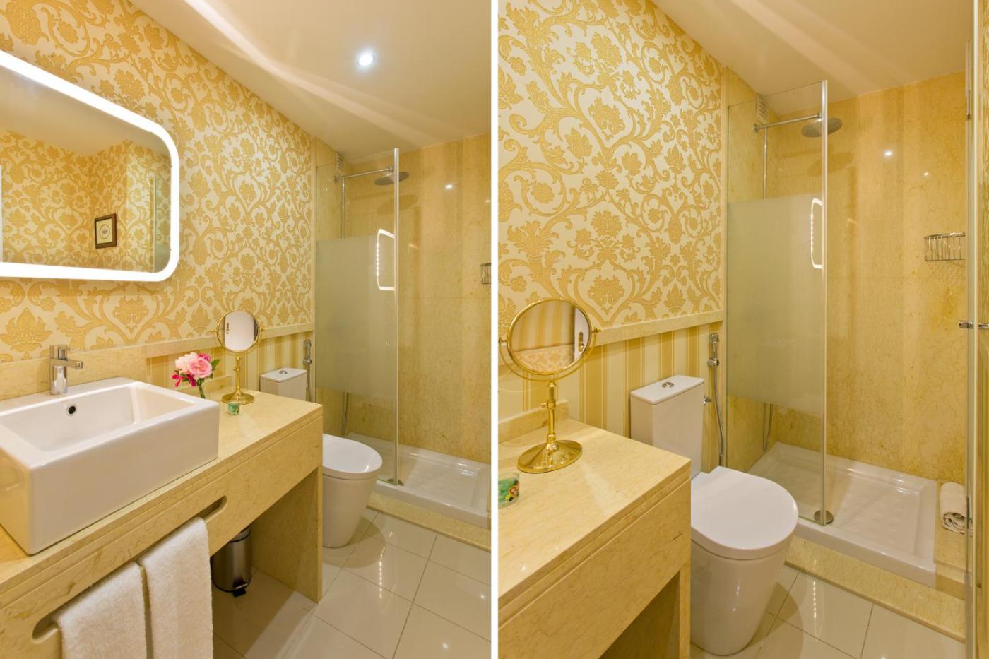 Three-Bedroom Apartment. Guests will have a special experience as this apartment provides a fireplace. This spacious apartment is comprised of 1 living room, 3 separate bedrooms and 3 bathrooms with a bath and a shower. In the well-equipped kitchen, guests will find a stovetop, a refrigerator, a dishwasher and kitchenware. Featuring a balcony with city views, this apartment also offers a washing machine and a flat-screen TV. The unit offers 8 beds.